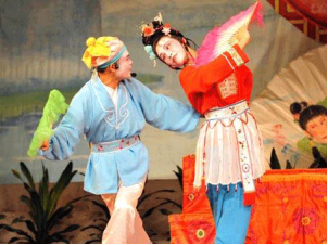 彩调俗称调子(zi)、 彩灯、 哪嗬嗨(1955 年(nian)参加(jia)北京群众音乐舞蹈观摩演出时才(cai)定名(míng)爲(wei)彩调) , 属灯戏係(xi)统。 彩调源于(yu)漓江(jiang)流域(yu)农村歌舞、 说唱衍化而成(cheng)的(de) “对子(zi)调” 。
